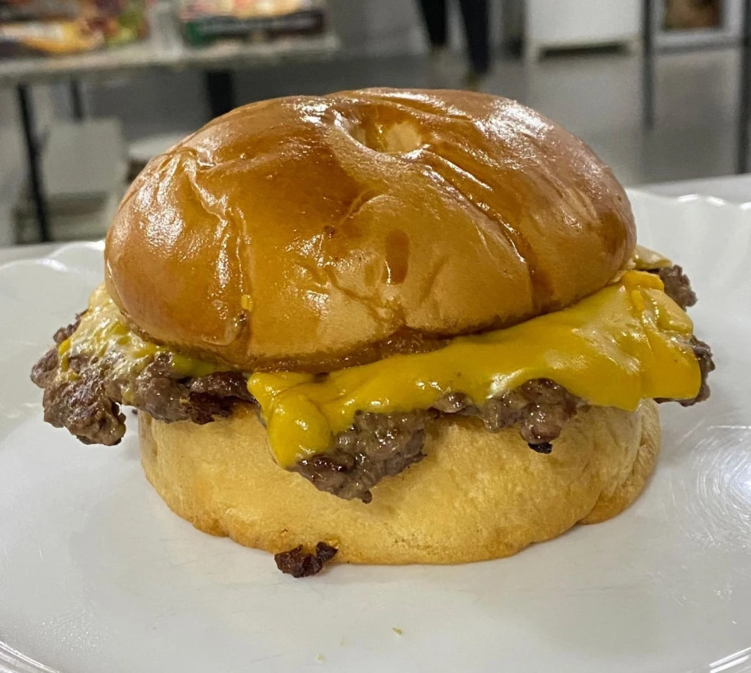 Pão, hamburguer smash, mussarela, cebola dourada, alface, tomate, molho.